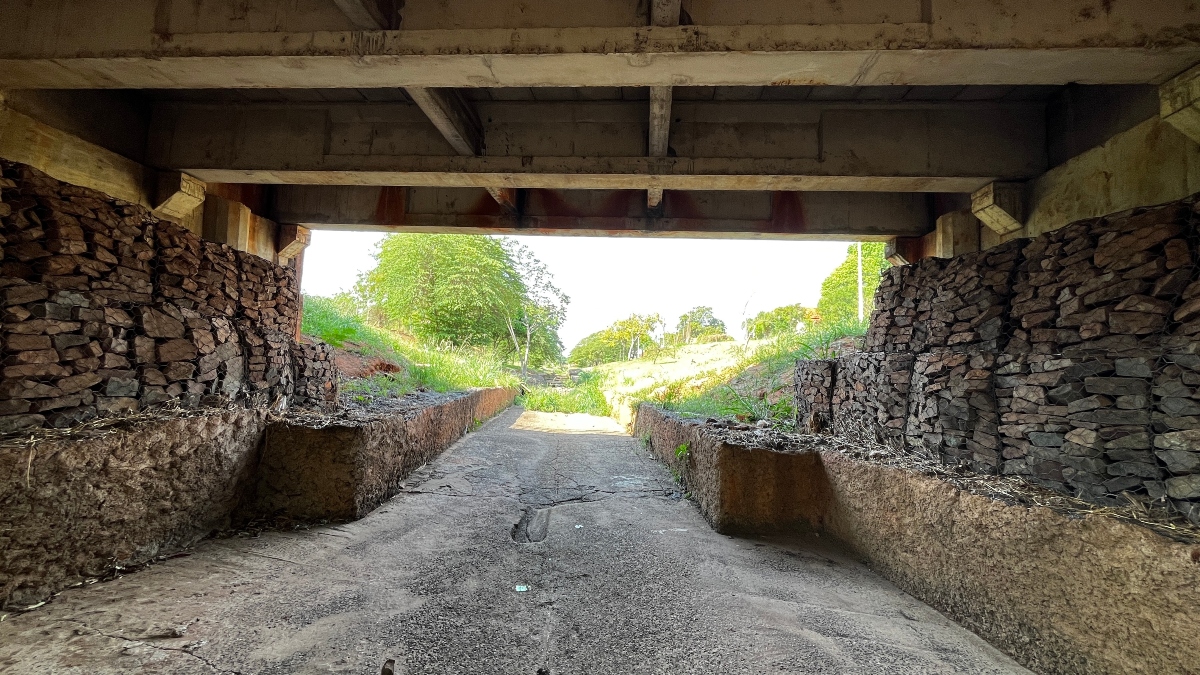 Já no trecho mais próximo à ponte que liga a Alameda Padre Nóbrega e Rua Dante Bolgue, os estragos são mais recentes.