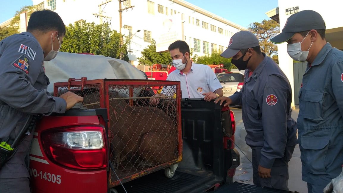 Capivara já sob os cuidados do Corpo de Bombeiros (Cedida).