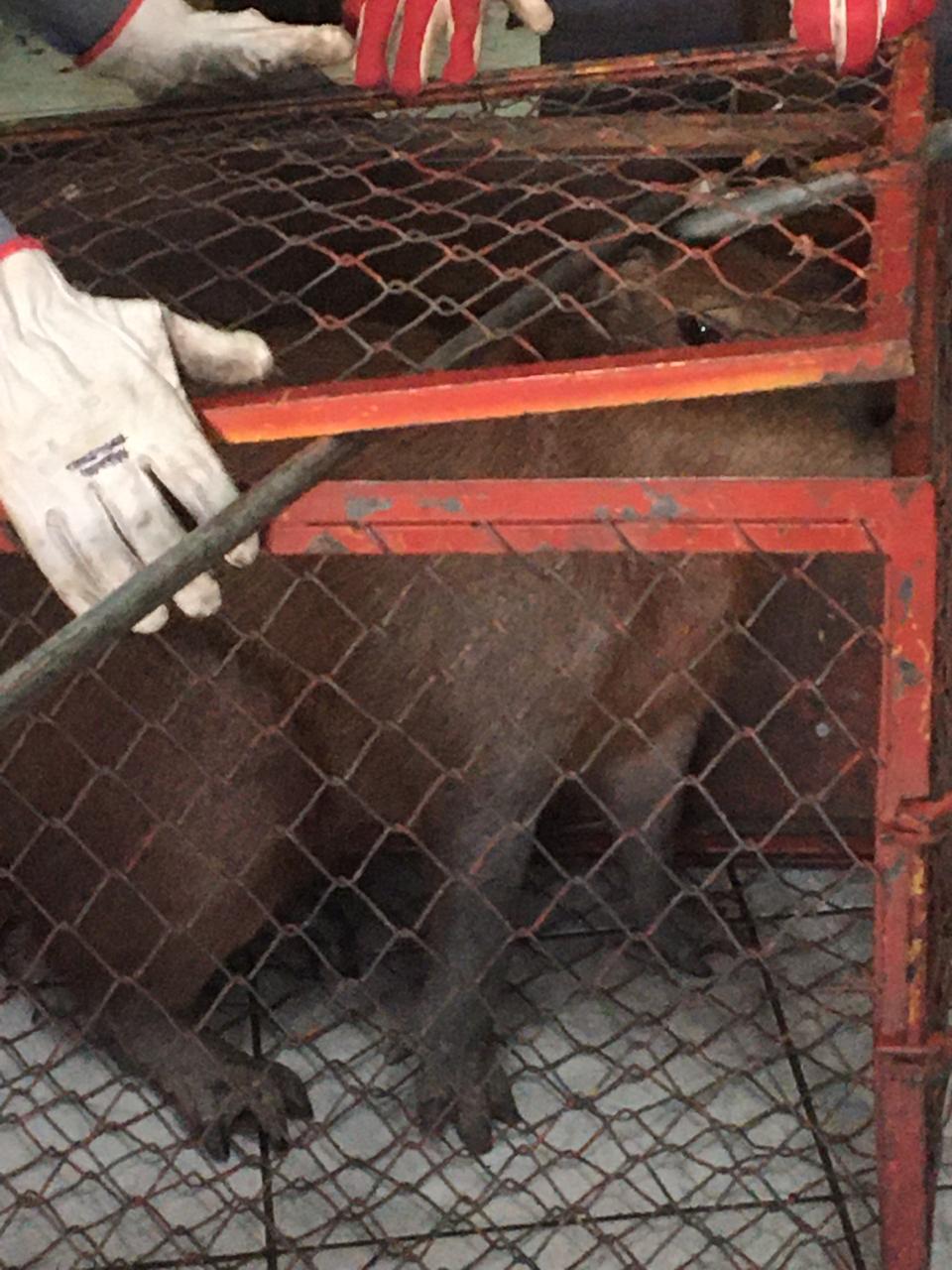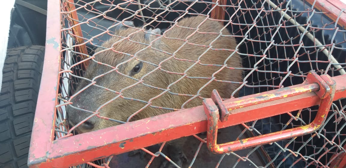Após capturada, capivara foi levada para avaliação veterinária (Cedida).