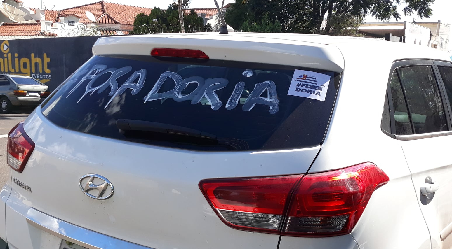 Os participantes se concentraram na Rua Rui Barbosa, proximidades ao cruzamento com a Avenida Rio Branco, de onde partiram por volta das 16h em carreata pelas principais ruas de Adamantina, com buzinaço, bandeirolas e gritos de ‘Fora Dória”. (Continua após a publicidade...)