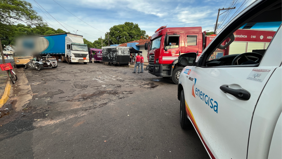 Corpo de Bombeiros, Polícia Miliar e a concessionária Energisa foram acionados, e enviaram equipes ao local. Os bombeiros fizeram o isolamento e a segurança da área e os agentes da concessionária a remoção dos cabos que ficaram enroscados no caminhão. Os agentes da PM efetuaram o registro da ocorrência, visando a apuração das responsabilidades, e para que as partes afetadas possam pleitear a reparação material dos danos.
