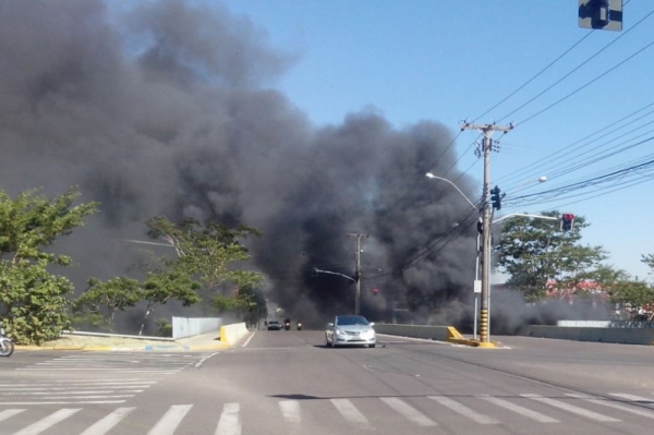 Um incêndio destruiu uma carreta, no início da tarde de hoje (11) no trecho urbano da Rodovia Raposo Tavares, em Prudente.