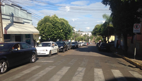 Há uma concentração de carros em ruas na área central da cidade, à espera de abastecimento em um posto localizado na Avenida Rio Branco, esquina com a Avenida Santo Antônio.
