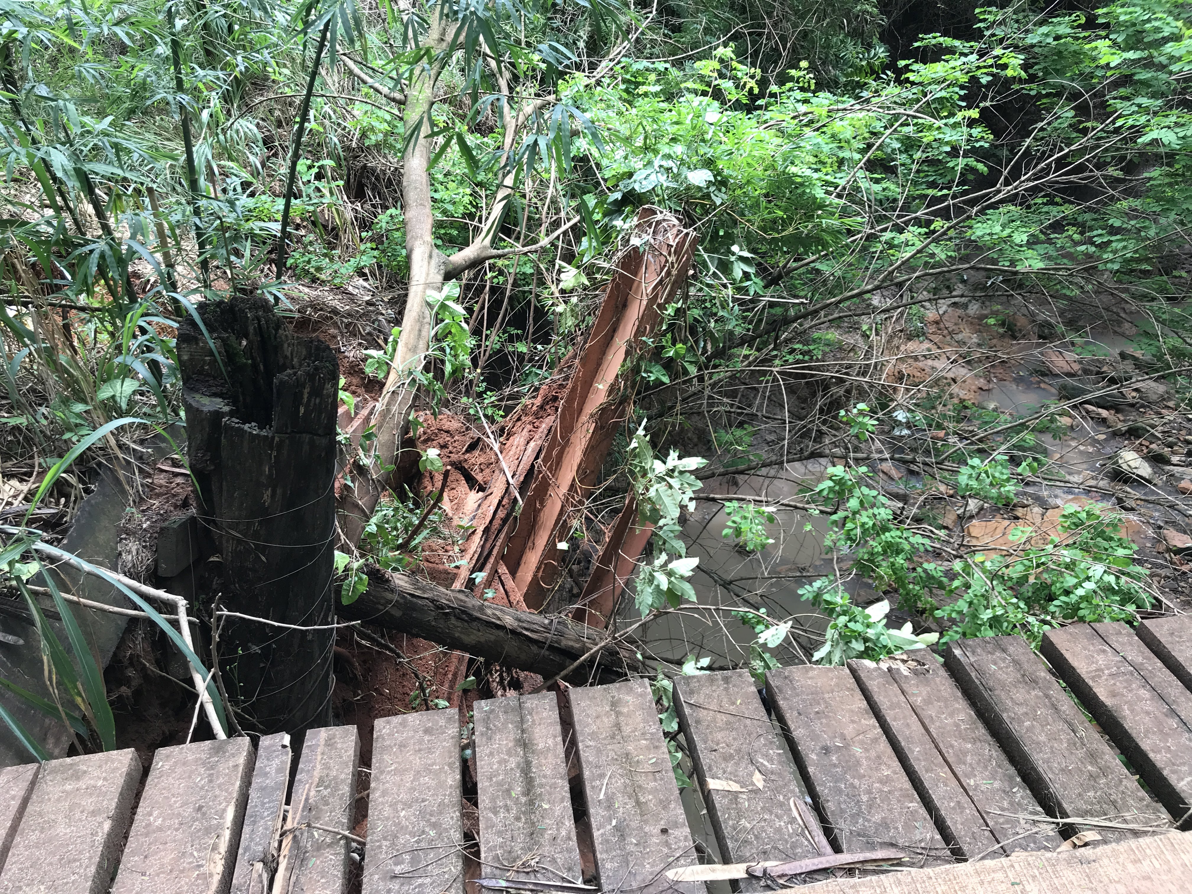 Desde novembro do ano passado a ponte está sem um dos corrimões, o que também foi informado na época pelo vereador à secretaria Municipal de Obras, o que ainda está sem solução.