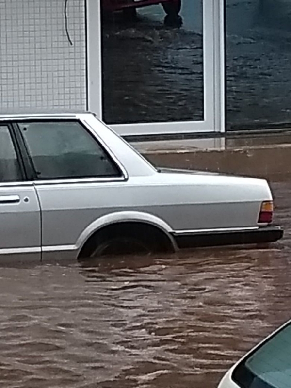 Com a tromba d´água, o alto volume de chuvas que caiu em um curto intervalo de tempo não foi drenado pelas galerias, provocando inundações. Nesse trecho, diversos veículos foram tomados pelas águas.
