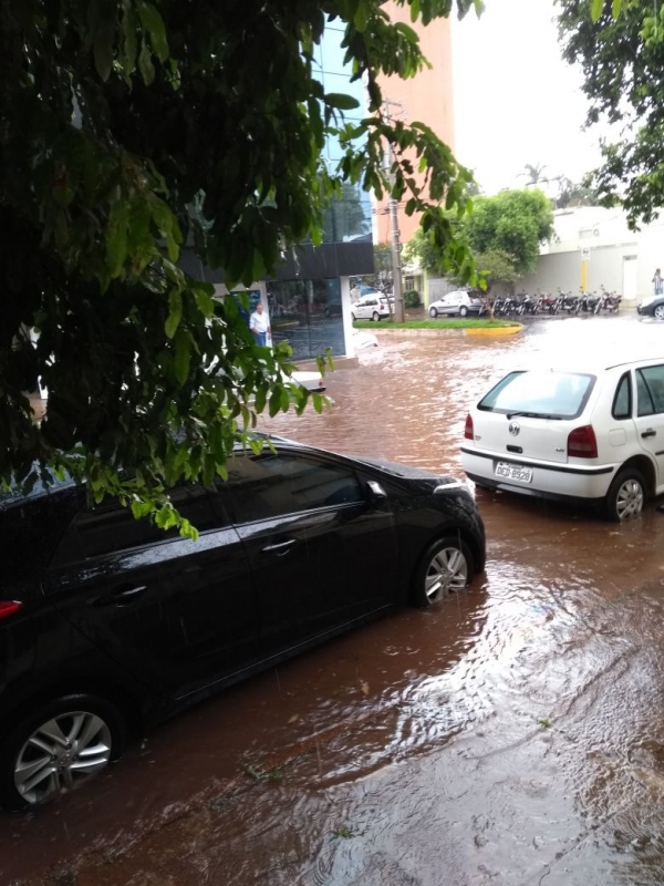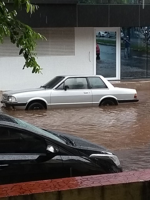 Nesta segunda-feira houve registros de alagamentos na esquina da Avenida Dr. Adhemar de Barros com a Alameda Fernão Dias, proximidades do Fórum.