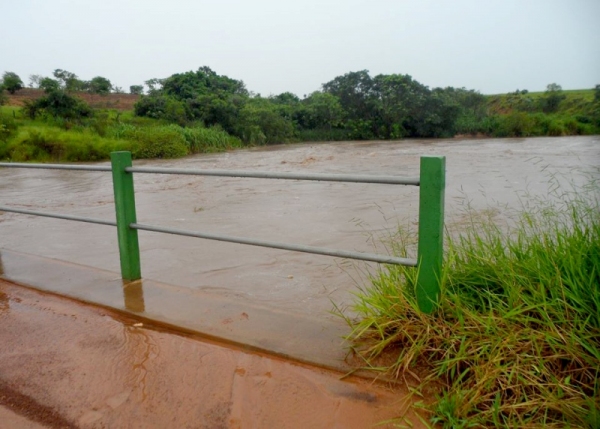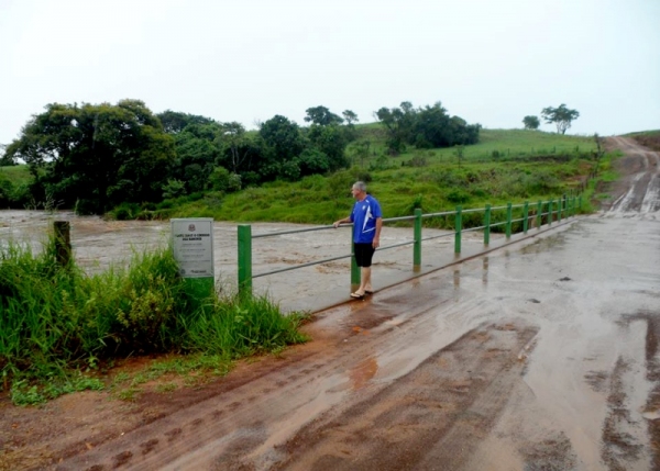 Um registro feito hoje (29) pela internauta Aparecida Sousa mostra o volume de água na ponte da vicinal MRP-380, que dá acesso ao bairro rural “Mourão”, que passa sobre o Córrego.