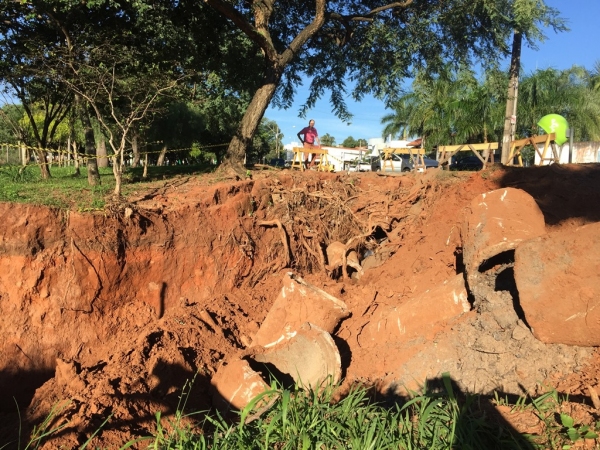 Chuvas abrem nova cratera no Parque dos Pioneiros