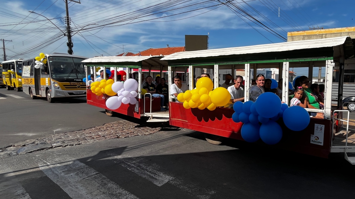 Outros destaques foram um bolo simbólico, à frente da carreata, e o serviço de som informando sobre a data especial vivida pela APAE adamantinense.