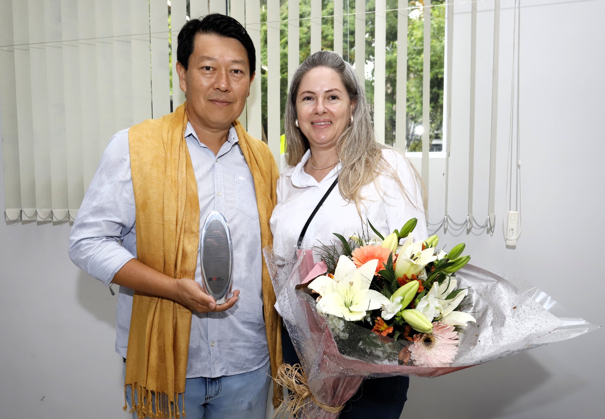 Fernando e a esposa Bárbara, em noite de reconhecimento (Divulgação/Agricultura-SP).