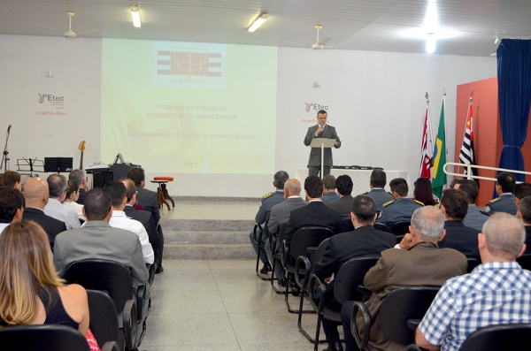 A solenidade aconteceu no auditório da ETEC Prof. Eudécio Luiz Vicente. A sessão de homenagens foi conduzida pela Juíza Ruth Duarte Menegatti (titular da 3ª Vara e Diretora do Fórum) e pelo Juiz Fábio Alexandre Marinelli Sola (1ª Vara). A cerimônia contou com a presença de autoridades do poder judiciário, civis e militares.