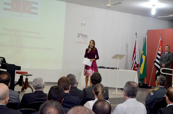 Também esteve presente o filho do Patrono do Fórum de Adamantina, Alberto Marino Neto, Desembargador do Tribunal de Justiça do Estado de São Paulo, que fez as entregas das honrarias aos homenageados.