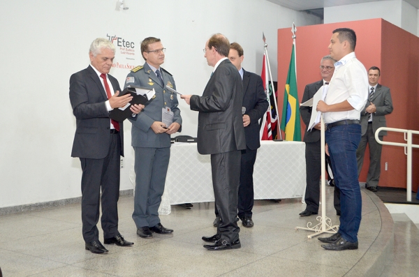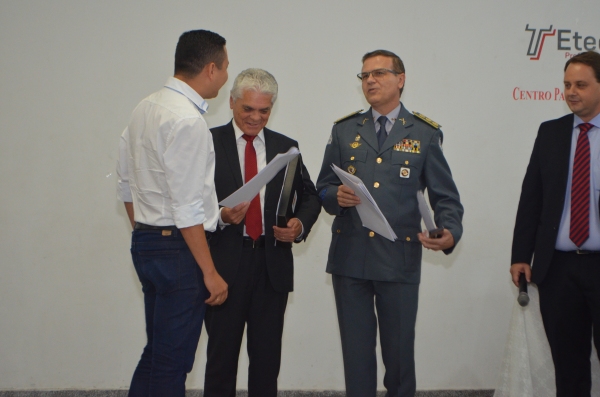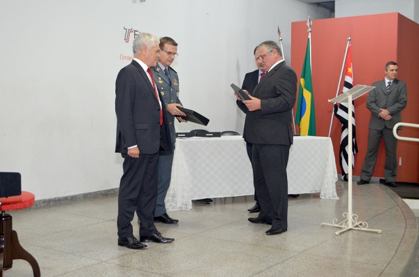 Na fase seguinte, o Juiz Fábio Alexandre Marinelli Sola conduziu a sessão de homenagens, com as entregas das honrarias ao Secretário de Administração Penitenciária do Estado de São Paulo, Lourival Gomes, e o Coronel PM Franco Nassaro, atual comandante do CPI-8.