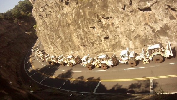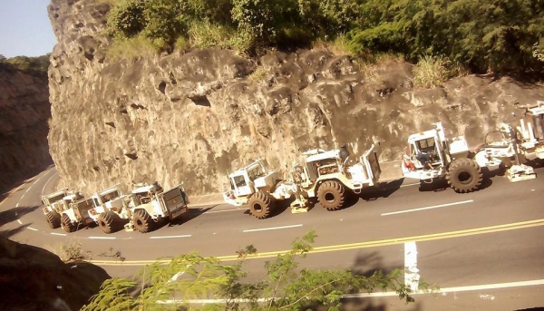 Após passar por Paraguaçu Paulista e Pompéia um comboio de caminhões e máquinas pesadas esteve neste sábado (07) no Distrito de Varpa, em Tupã.