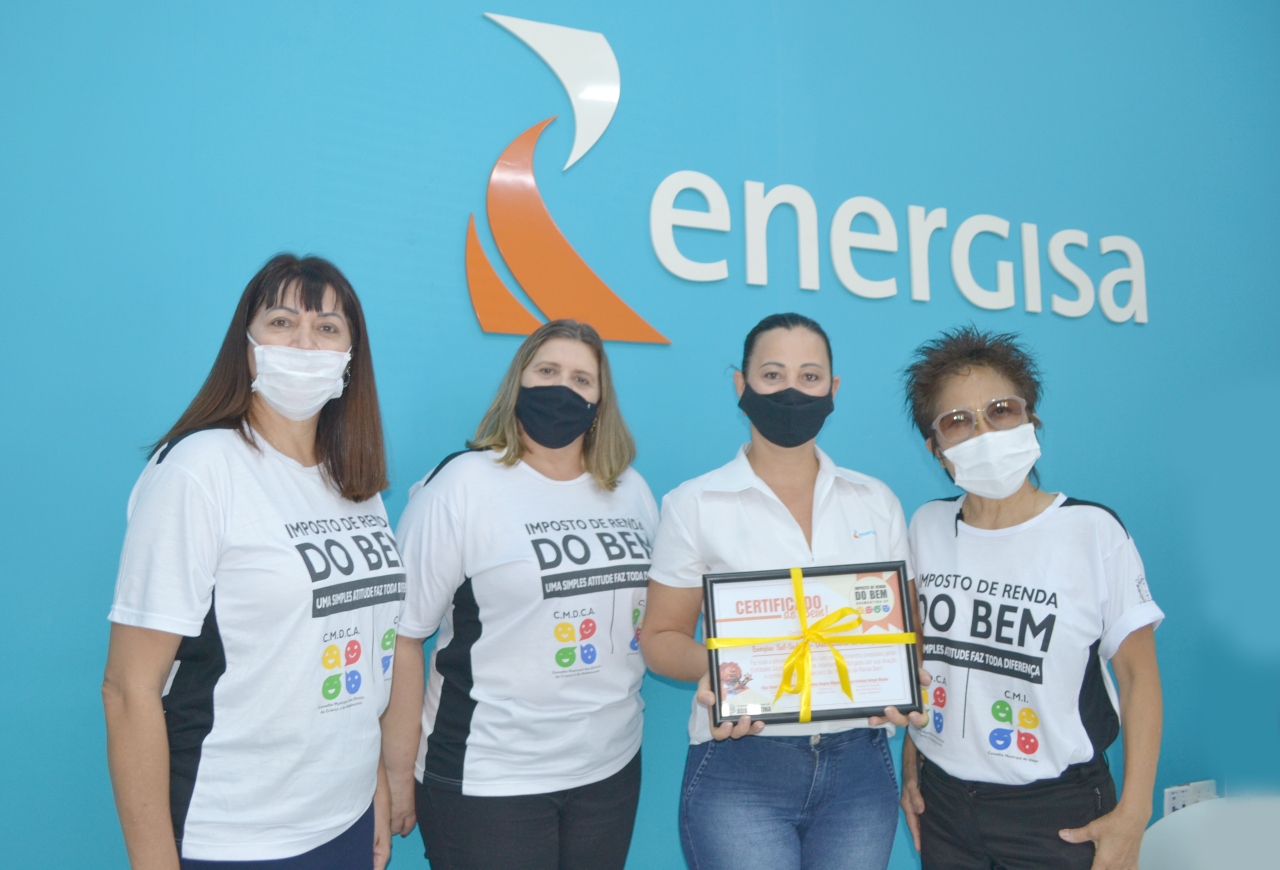 Representantes da Campanha Imposto de Renda do Bem entregando o “Certificado do Bem” para a equipe da Energisa (As. Imprensa/IR do Bem).