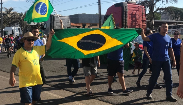Manifestação em apoio aos caminhoneiros percorreu ruas e chegou à SP-294.