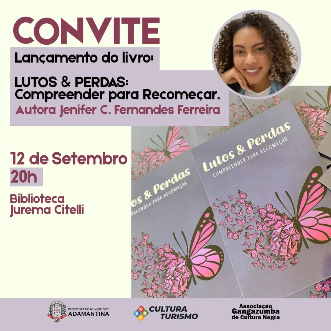 A programação da Secretaria Municipal de Cultura e Turismo de Adamantina traz para esta segunda-feira (12) o lançamento de “Lutos & Perdas: Compreender para Recomeçar”, um livro em forma de cartas dividido em 11 capítulos, onde a psicóloga adamantinense Jenifer C. Fernandes Ferreira é autora de um deles, “Reações e Sentimentos”, e fez uma contribuição no capítulo “O que é o luto: Concreto e Simbólico?”. Conforme a programação, lançamento ocorre na Biblioteca Pública Municipal “Jurema Citelli”, às 20h. A atividade é aberta a público.