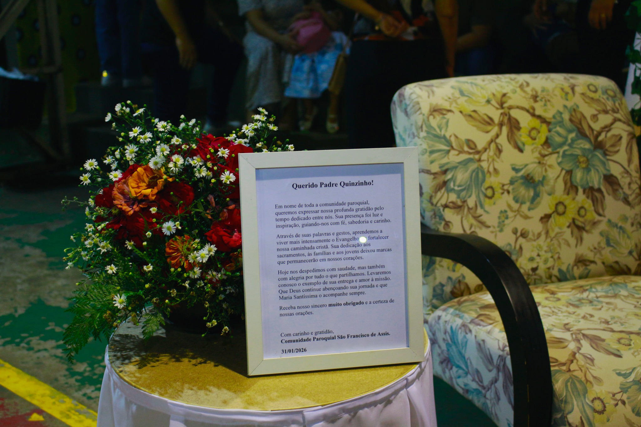 A despedida do padre Quinzinho foi marcada por gratidão e reconhecimento, enquanto a comunidade também se prepara para acolher o novo pároco, dando continuidade à caminhada pastoral da Paróquia São Francisco de Assis em Adamantina.