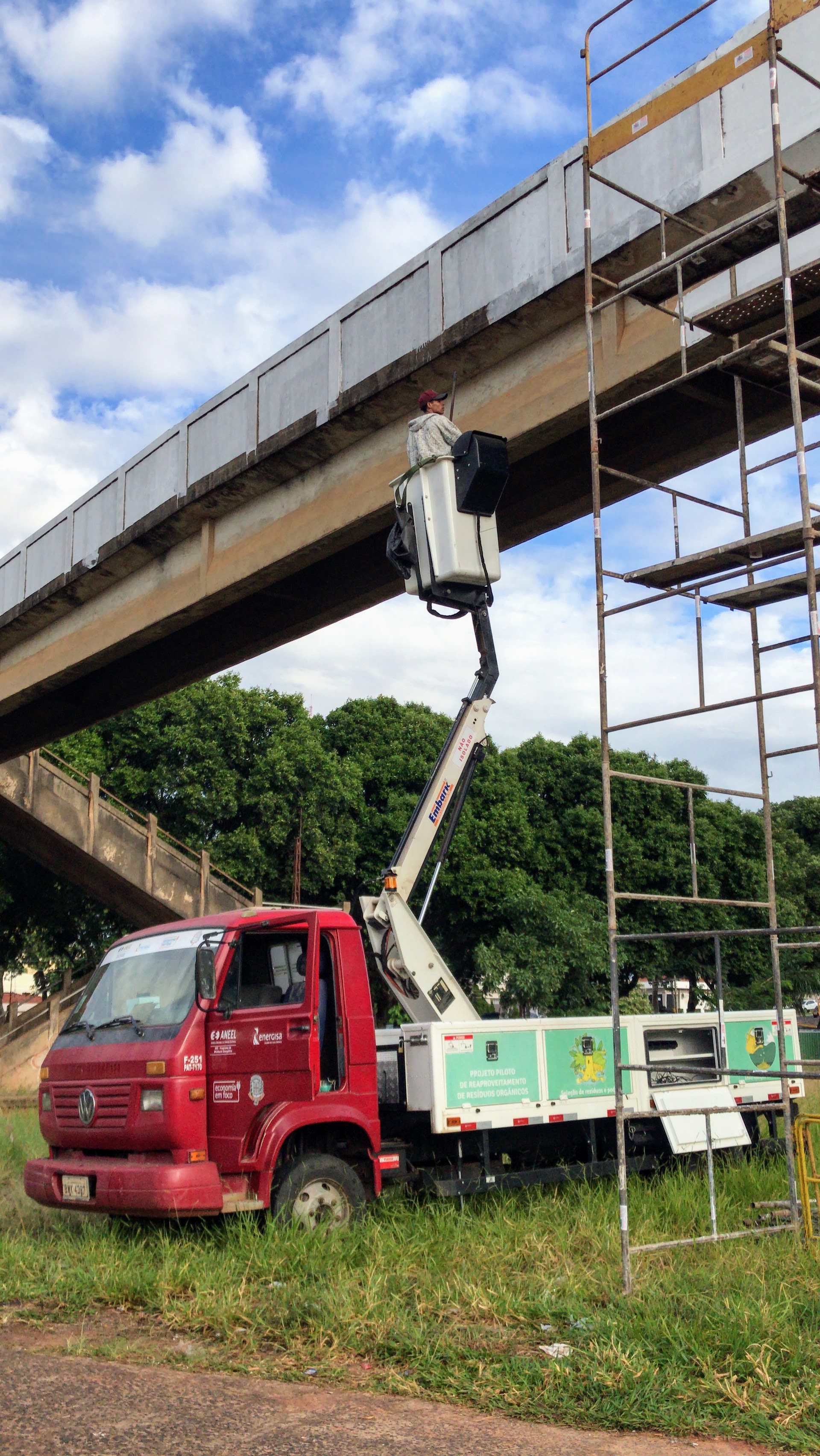 Veículo para trabalho em altura auxiliar o artista (Foto: Siga Mais).