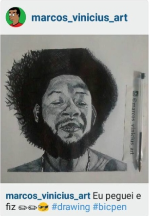 Em junho de 2016, uma matéria mostrou suas criações com desenhos feitos a partir de lápis canetas esferográficas. Na época, com 24 anos, cursava desenho industrial na UniFAI. Um dos desenhos dele, mostrado na reportagem, trazia o rapper, repórter e produtor musical Emicida. Depois de finalizado, o desenho foi postado nas redes sociais e o próprio artista elogiou: “foda!”, escreveu.