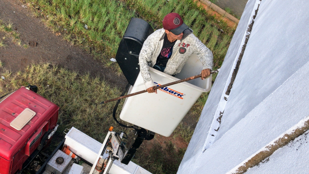 Do alto, artista inicia a intervenção no espaço (Foto: Siga Mais).