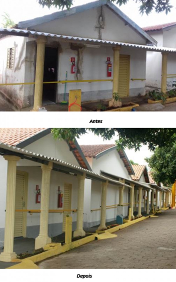 Ele explica que os telhados foram lavados e parte deles substituídos com a instalação de madeiramento e telhas novas. O chão foi restaurado e pintado nas partes com relevo, para alertar os idosos quanto ao risco de queda, e instaladas barras de apoio lateral nos corredores.