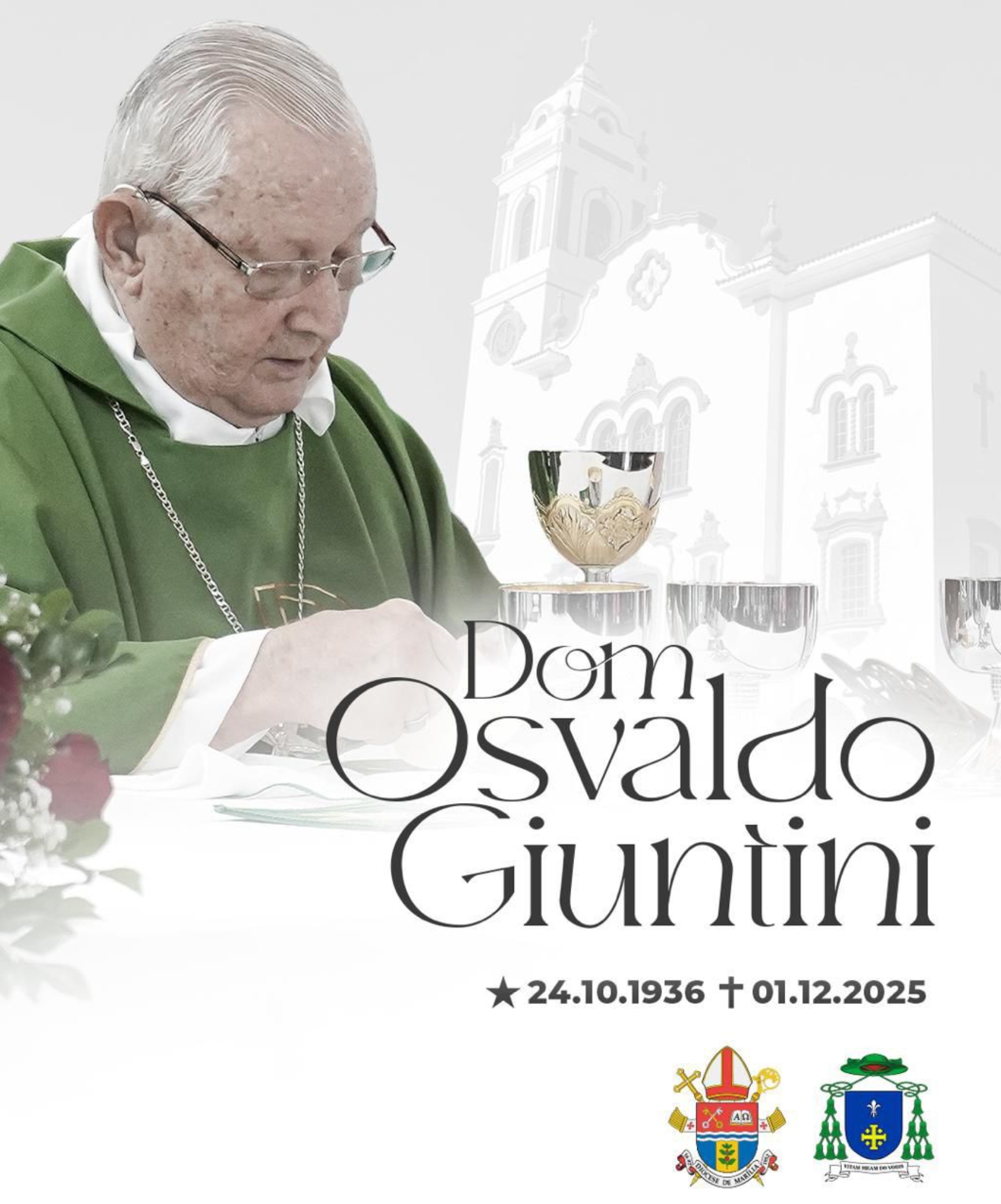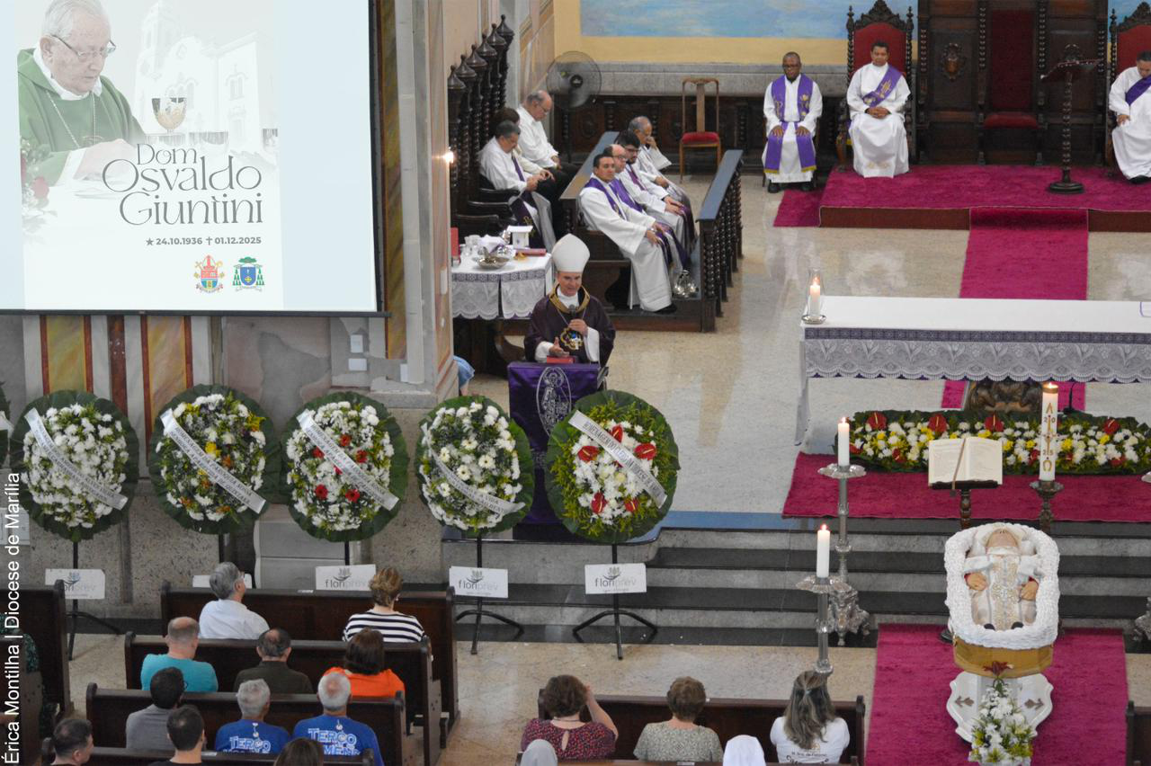 Na noite desta segunda-feira (1), o corpo do bispo emérito da Diocese de Marília, Dom Osvaldo Giuntini, chegou à Igreja Catedral de São Bento Abade, em Marília, para as despedidas fúnebres. Ele morreu à tarde, após agravamento do se quadro de saúde. Dom Osvaldo estava hospitalizado desde 13 de novembro na UTI.