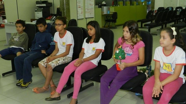 Um grupo de crianças do Lar Cristão de Adamantina realizou hoje (10) uma visita monitorada à agência do Santander local, e conheceu a rotina de funcionamento do estabelecimento bancário.