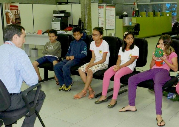 Crianças do Lar Cristão visitam Santander e conhecem rotina de agência bancária