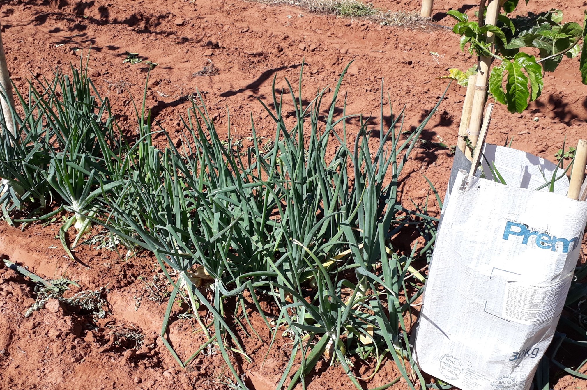Além de otimizar a área de cultivo, esse consórcio gera renda, pois na época da colheita da cebola, o maracujazeiro ainda não está produzindo (Cedida).