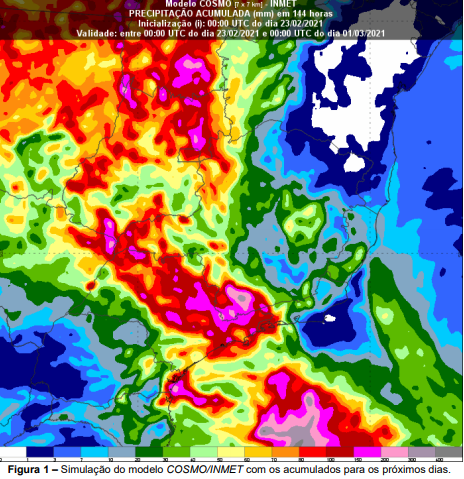 Segundo a Defesa Civil, não há previsão de elevados acumulados nas próximas 72h (35mm), porém, como um grande volume de água pode cair em um espaço curto de tempo, existe risco de transtornos, como desabamentos, alagamentos, enchentes e ocorrências relacionadas a raios e ventos. Para outras regiões do estado, há risco de tempestades mais intensas, para o mesmo período. (Continua após a publicidade...)