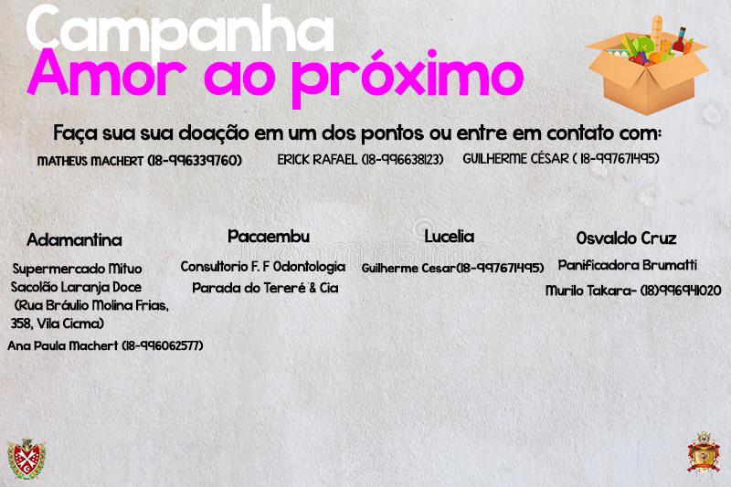 O Capítulo 479 da Ordem Demolay, em Adamantina, em conjunto com o Clube de Mães, realiza a campanha “Amor ao Próximo”, que objetiva arrecadar alimentos e produtos de higiene pessoal que posteriormente serão doados a famílias que estão passando por dificuldades em meio à pandemia da Covid-19. (Continua após a publicidade...)