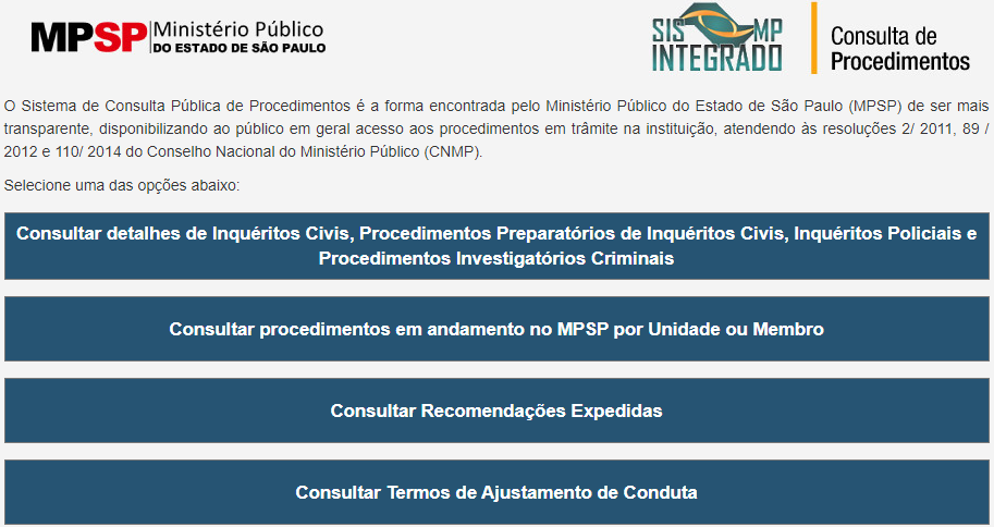 Além do fornecimento dos dados requisitados pela reportagem do SIGA MAIS, o MPSP informou que o site do órgão disponibiliza pesquisa pública e gratuita dos procedimentos em andamento, o Sistema de Consulta Pública de Procedimentos (SIS-MP Integrado), que pode ser acessado por meio do endereço https://sismpconsultapublica.mpsp.mp.br.