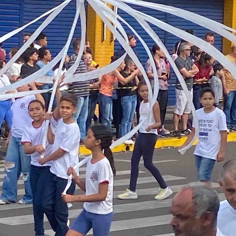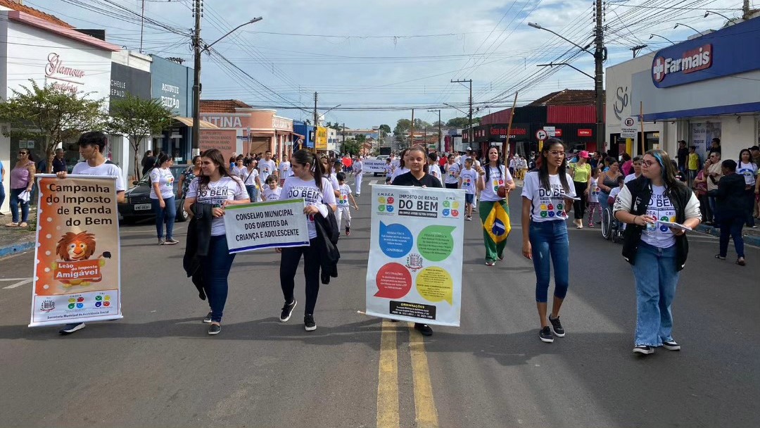 Um palco montado no cruzamento da Avenida Rio Branco com a Rua Deputado Salles Filho abrigou as autoridades. O desfile teve a apresentação do jornalista e radialista Jonas Bonassa “Sabiá”, com comentários da também jornalista e radialista Cleide Tinetti.