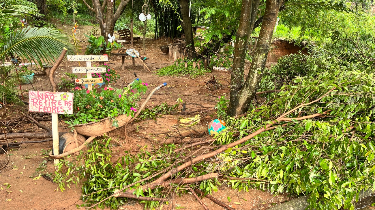 Com isso, os galhos ficaram depositados sobre flores, placas, peças de decoração e mobiliário, que foram executados pelos próprios moradores. Foi essa conduta que gerou revolta. A publicação em rede social também comoveu os internautas, que se solidarizaram.