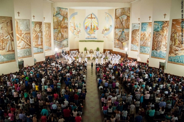 A Matriz de Matriz de São José, em Osvaldo Cruz, ficou repleta de fiéis na missa da última segunda-feira, dia 30 de Abril, para a ordenação dos nove novos diáconos da Diocese de Marília.