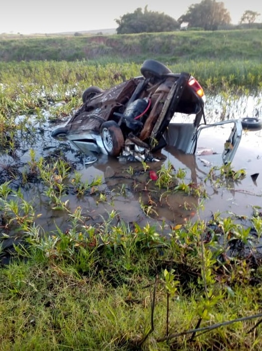 Carro saiu da pista e capotou, matando duas pessoas e deixando uma terceira ferida.