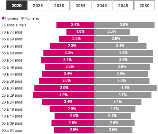 Projeção da população por sexo e idade (Reprodução/Painel Seade).