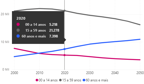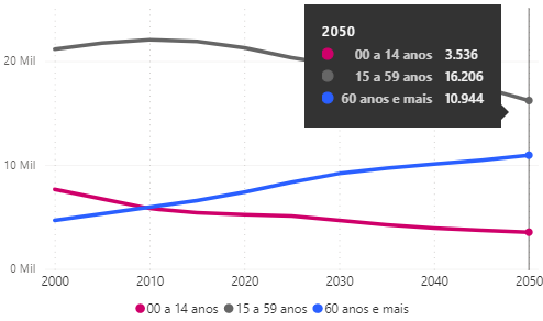 Evolução da população por grupos de idade (Reprodução/Painel Seade).