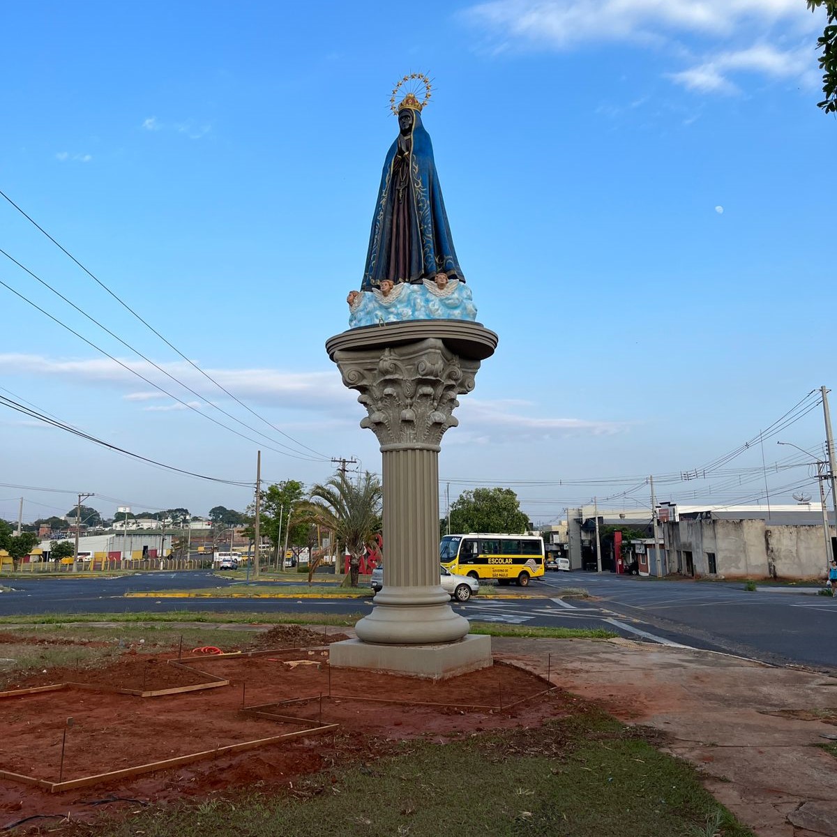 Em Bastos, pastor ataca instalação de imagem de Nossa Senhora Aparecida em rotatória da cidade