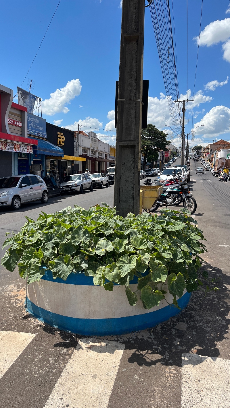A situação do local foi apontada por um empresário, que tem loja próximo ao espaço. Descontente, ele vinculou a plantação de abóbora à ausência de zeladoria e cuidados pelo poder público municipal, responsável pela manutenção do canteiro, situação que contraste com outros espaços públicos.