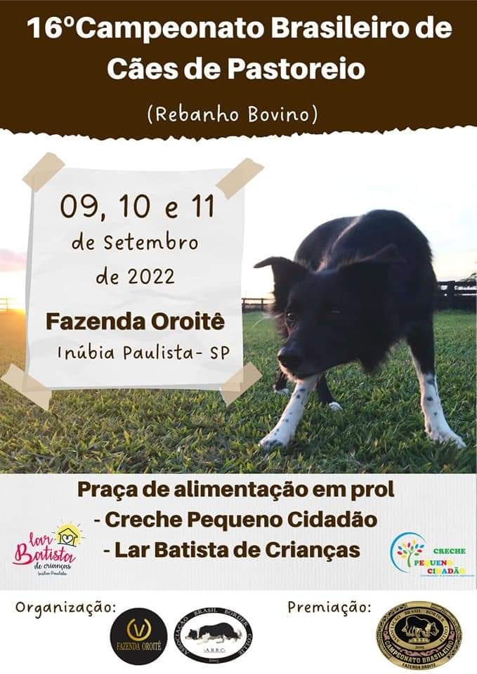 Inúbia Paulista sedia nesta sexta-feira (9) sábado (10) e domingo (11) o 16º Campeonato Brasileiro de Cães de Pastoreio, organizado pela Fazenda Oroitê e Associação Brasil Border Collie (ABBC). A competição reúne competidores de diferentes regiões do Brasil e um do Uruguai.
