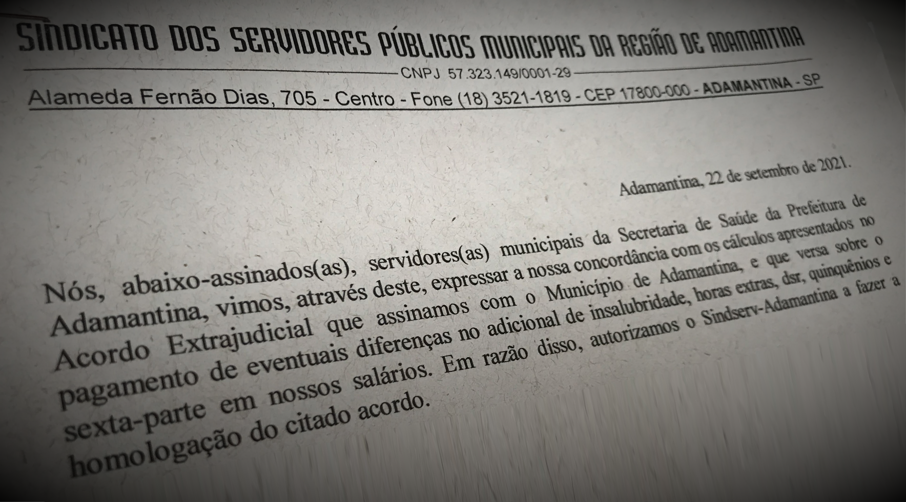 Assim, ficou em aberto o pagamento da complementação adicional de março a outubro do ano passado. Com o cenário de risco já conhecido e atestado em laudo, houve um entendimento entre a Prefeitura e os servidores municipais sinalizando a possibilidade de um acordo extrajudicial para a realização desses pagamentos de maneira simplificada, desburocratizada e rápida, evitando custas processuais e despesas advocatícias, entre outras.