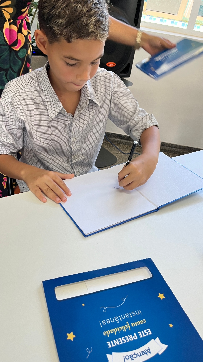 O pequeno escritor interagiu com o público, falou sobre o livro e respondeu perguntas dos participantes. Houve ainda sorteio de livros entre os colegas da turma. Com desenvoltura, Miguel autografou os exemplares e celebrou a consolidação da publicação. A atividade emocionou o público.