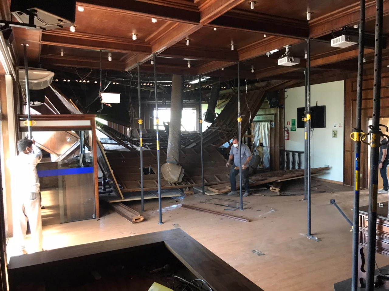 Estrutura do forro do plenário da Câmara Municipal de Tupã desaba
