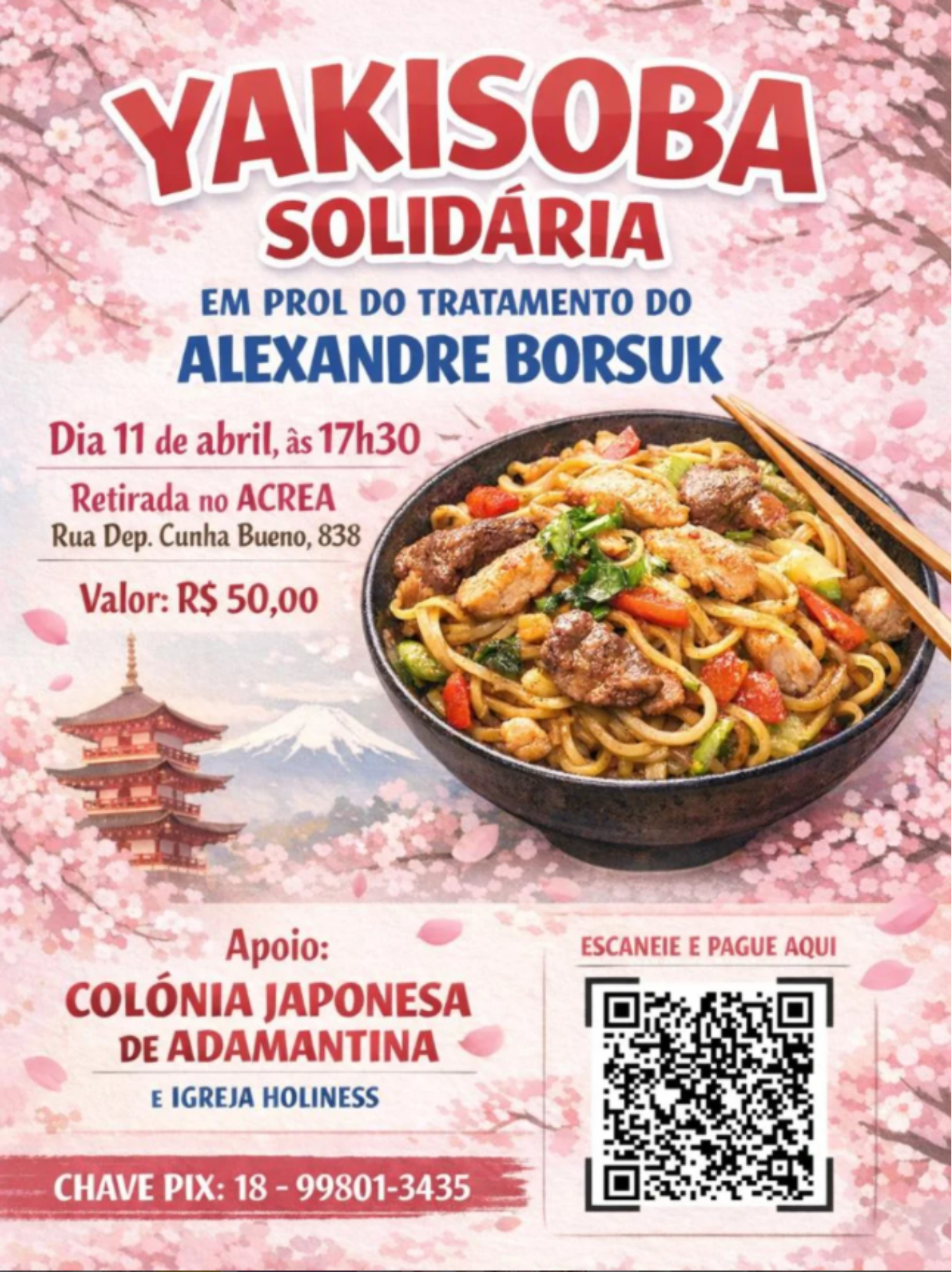 Uma das iniciativas mantidas, sob a articulação da colônia japonesa, é a venda de cupons para um yakisoba, com entrega prevista para o próximo sábado (11). A iniciativa tem o apoio da Igreja Holiness local.