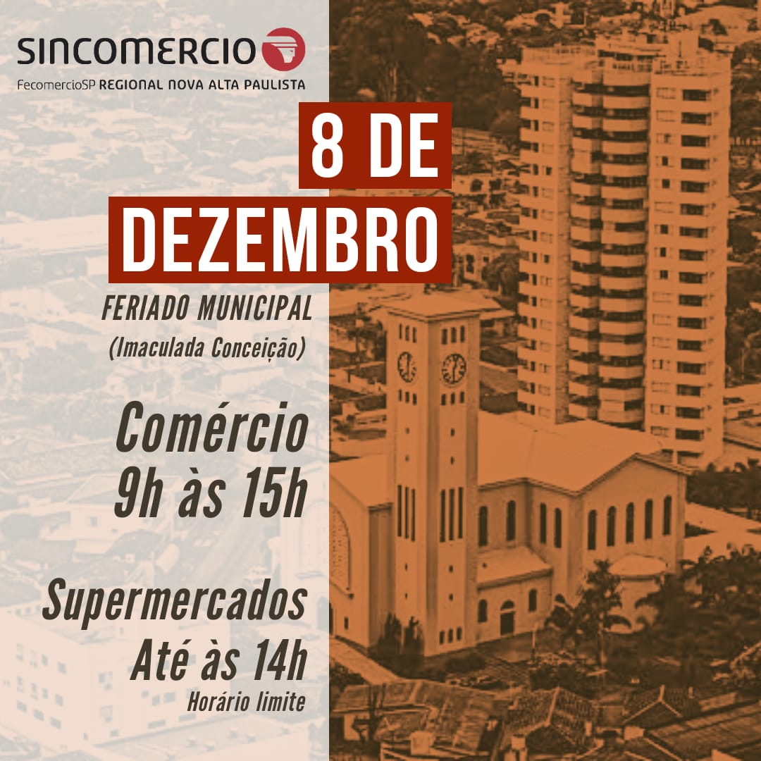 Consulado na manhã desta quinta-feira (3) o Sincomercio Alta Paulista informou que o comércio de Adamantina terá horário especial, no feriado (8), terça-feira, com funcionamento autorizado das 9h às 15h. Ainda de acordo com o Sindicato, supermercados poderão funcionar até às 14h (horário limite para esse setor, no feriado).