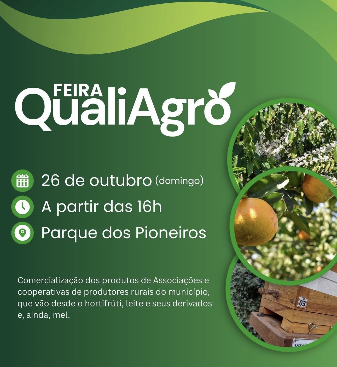 A SAAMA realiza a 2ª edição da Feira QualiAgro, que tem como objetivo incentivar as associações e cooperativas de produtores rurais do município na comercialização de seus produtos — entre eles hortifrúti, leite e derivados, além de mel.