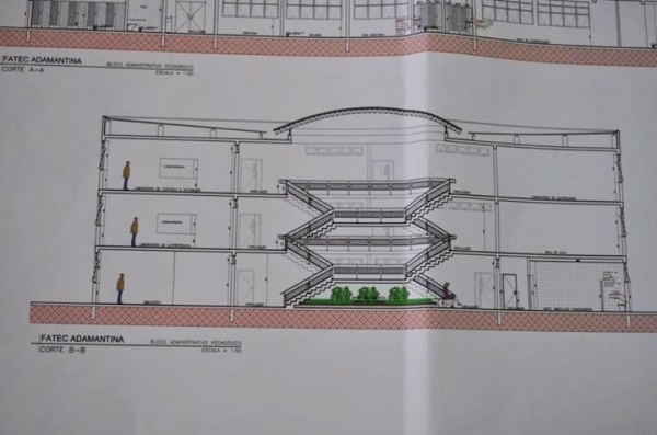 Em 2012, tão logo após o anúncio da FATEC para Adamantina, feito pelo governador Geraldo Alckmin, a própria FATEC chegou a apresentar croqui do prédio que seria construído no terreno próximo ao Terminal Rodoviário/Jardim Brasil, um edifício de piso térreo e mais dois andares, o que foi divulgado na época na fanpege oficial da Prefeitura no Facebook (reveja aqui).
