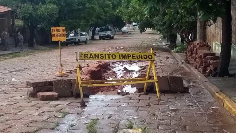 Pela Amador Rodrigues, paralelepípedos foram arrancados pela enxurrada e um trecho da via pública foi interditado.